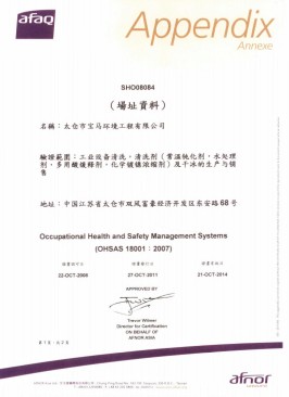 已經(jīng)獲得最嚴格的法國AFAQ-EAQA ISO9001、ISO14001、OHSAS18001認證,取得電廠鍋爐化學清洗A級資質(zhì)。